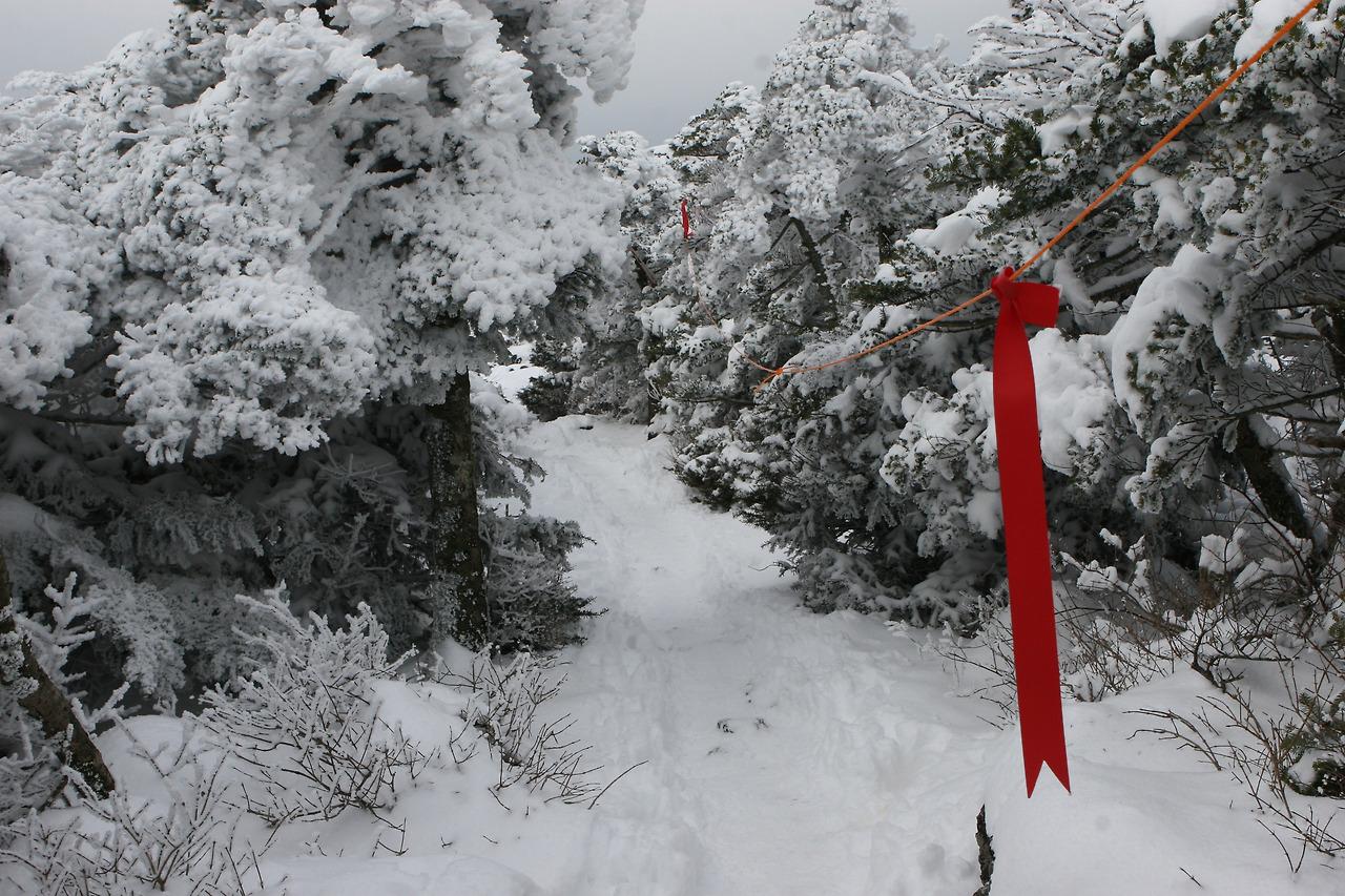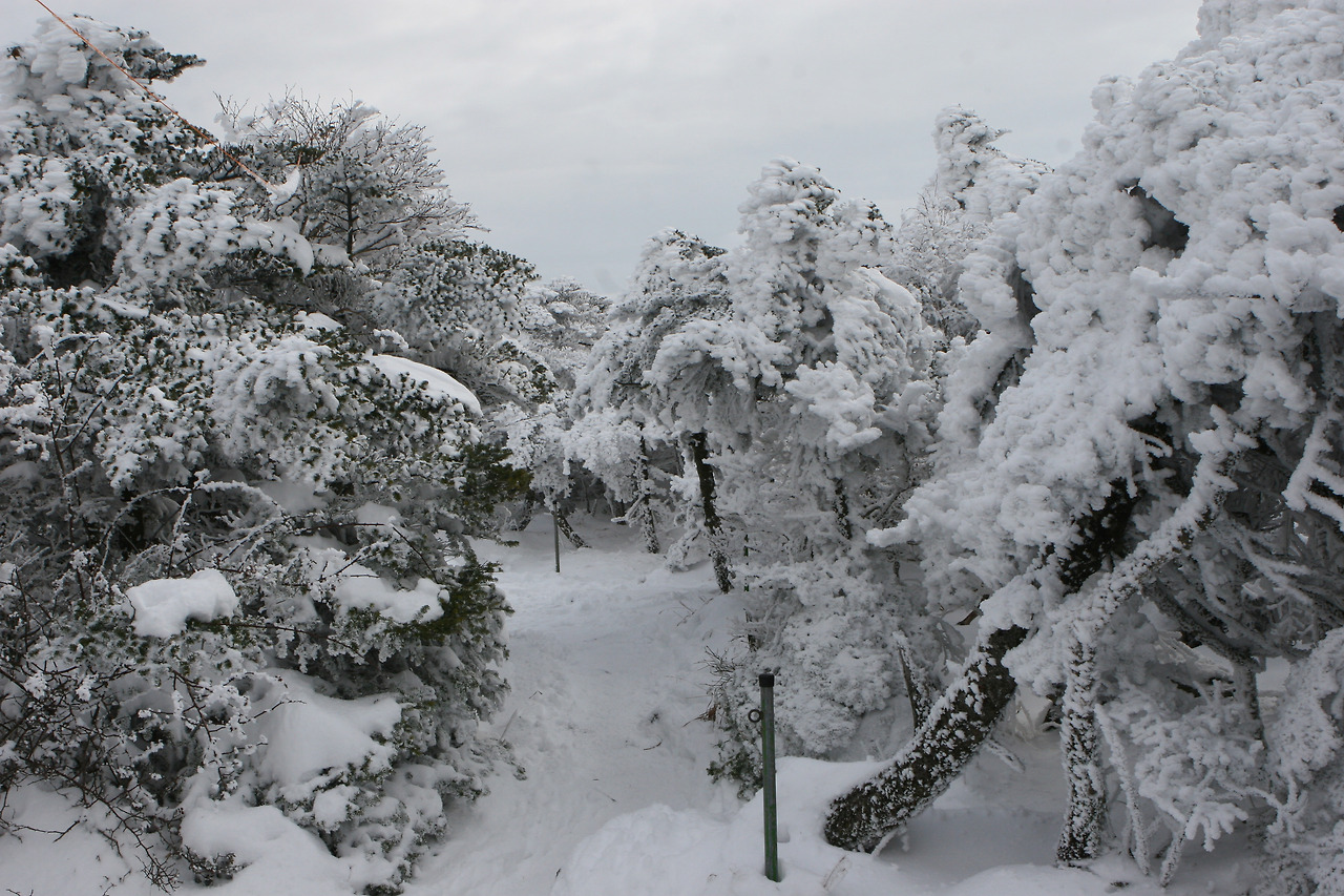 이 풍경 만으로 충분히 압도적이지만 조금 더 가면 살아서 백년 죽어서 백년이라는 구상나무들이 모여 있는 군락지를 만나 잠시 해찰하다 다시 발걸음을 옮기면 전혀 예상치 못한 풍광이 펼쳐진다.