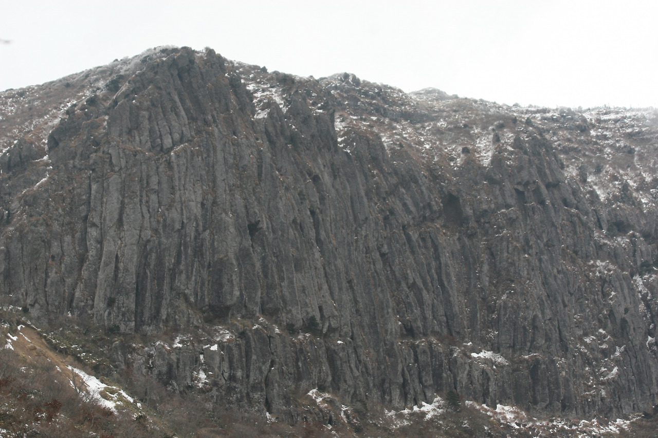 이 트래킹 코스를 따라 새끼오름 옆으로 노루샘까지 걷다보면 거대한 남벽이 모습을 드러낸다.