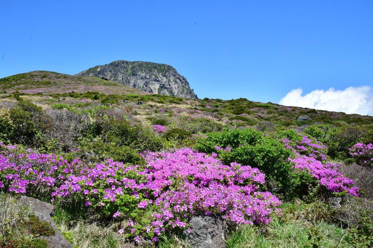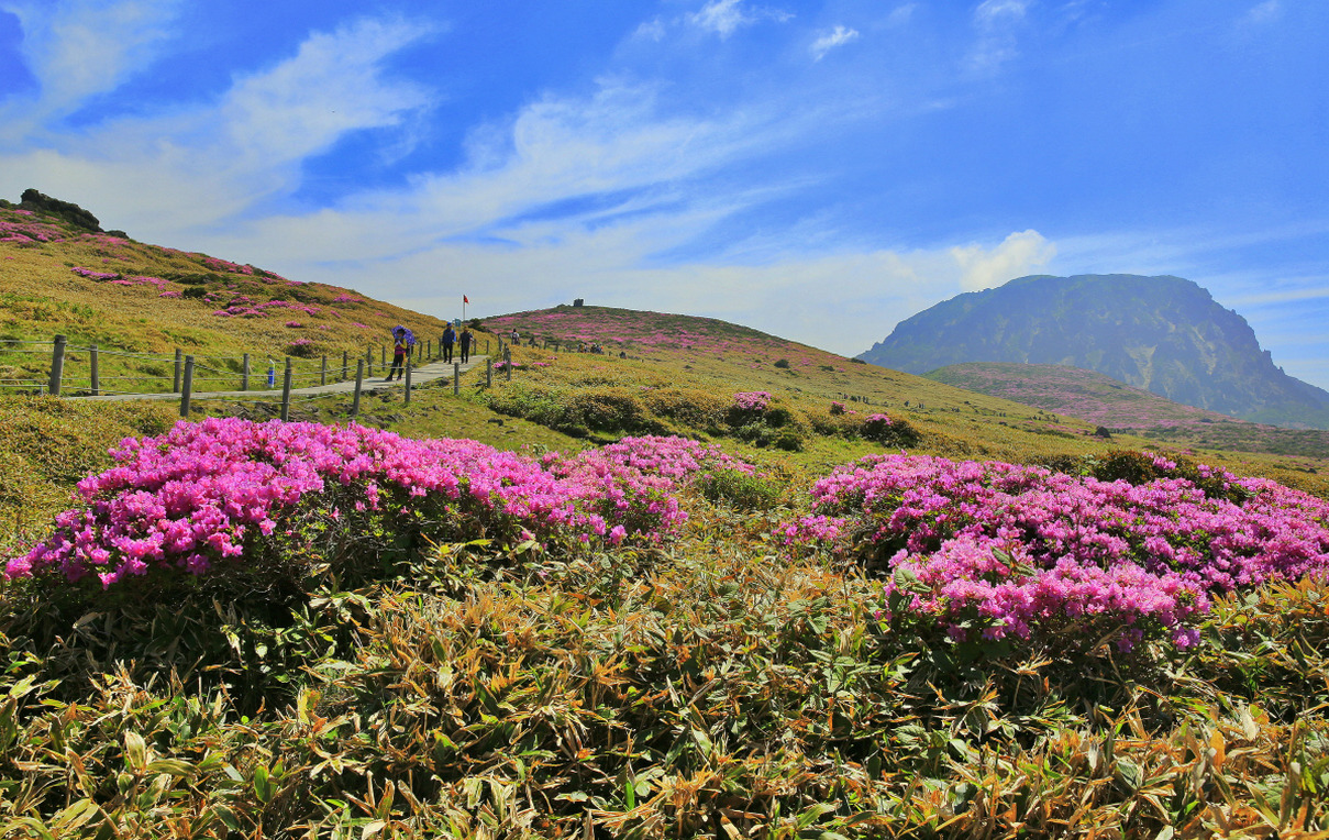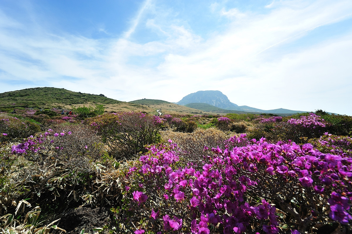 백록담 서벽 아래로 800여만 평의 고산초원인 선작지왓의 봄은 붉다.