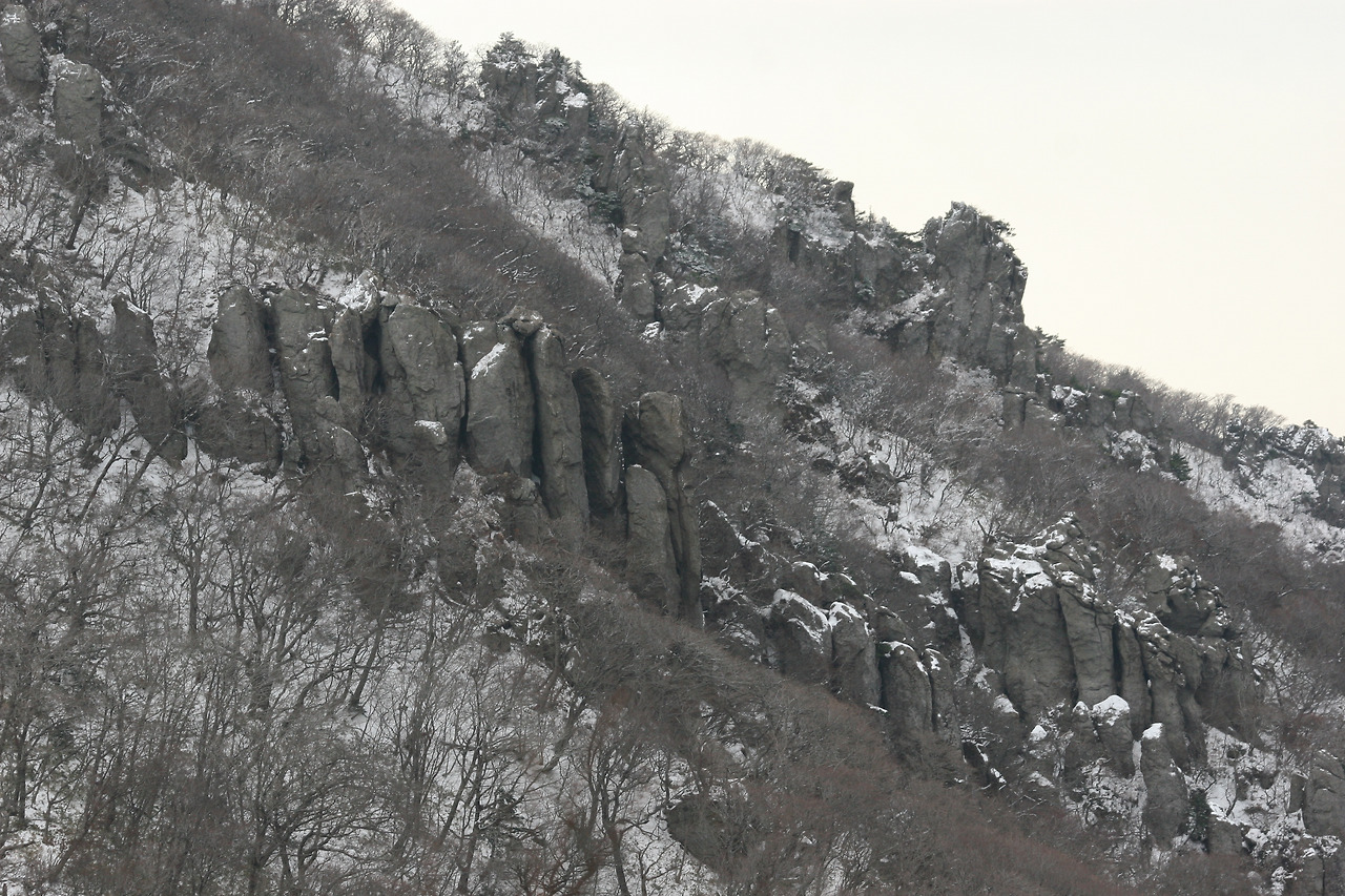 거대한 계곡 우측에 천태만상의 기암 괴석들은 영실기암이다.