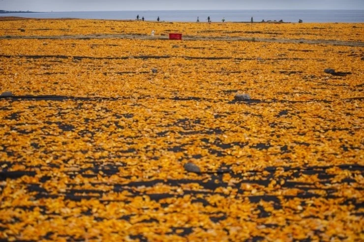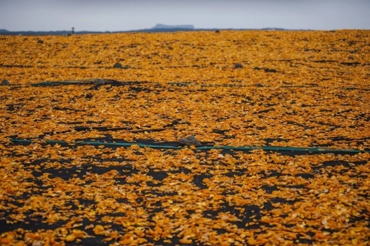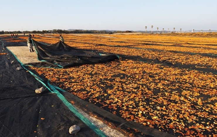 개발예정지라 말들의 수는 줄었지만, 여전히 귤을 말리는 풍광은 환상적이다.