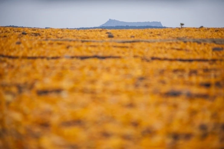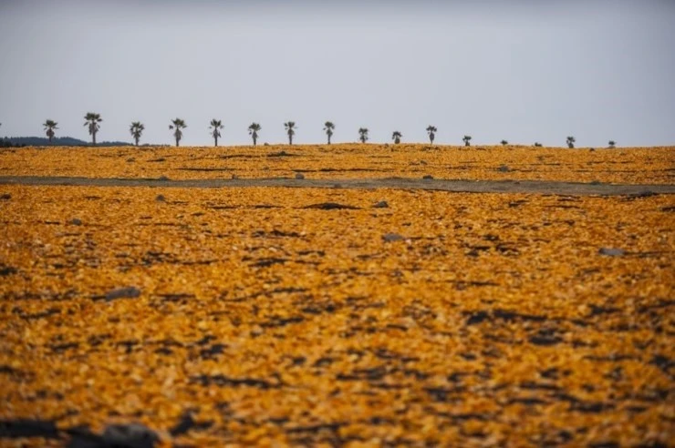 11월말께에서 2월 초순까지 말들이 풀을 뜯던 광활한 초지가 돌연 주홍바다로 바뀐다.
