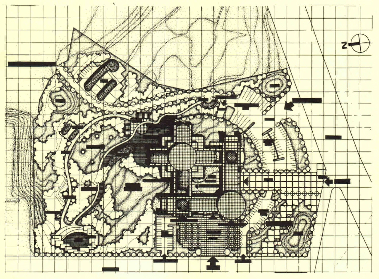 물의 흐름과 수목을 이용한 상징적 공간체계