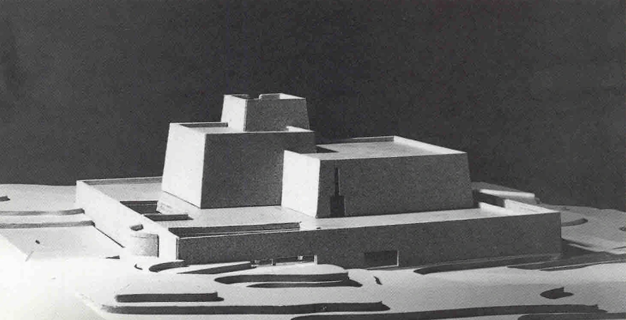 전면의 큰 사각형은 수장고와 기획전시실이고 높이는 가장 낮다.