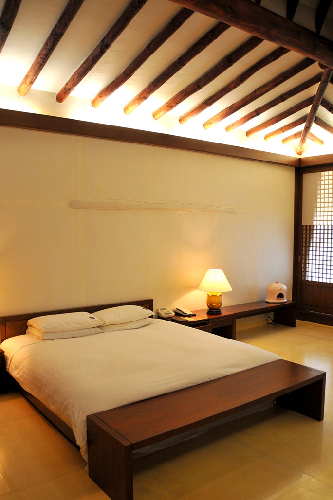 안마당에선 유채꽃과 보리밭이 파도를 치고 초가집이 여러 개 만나면서 포도송이처럼 보여 호텔이름이 포도.