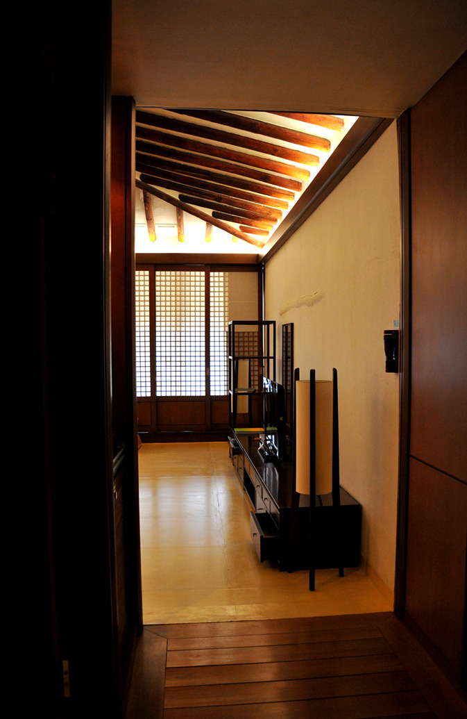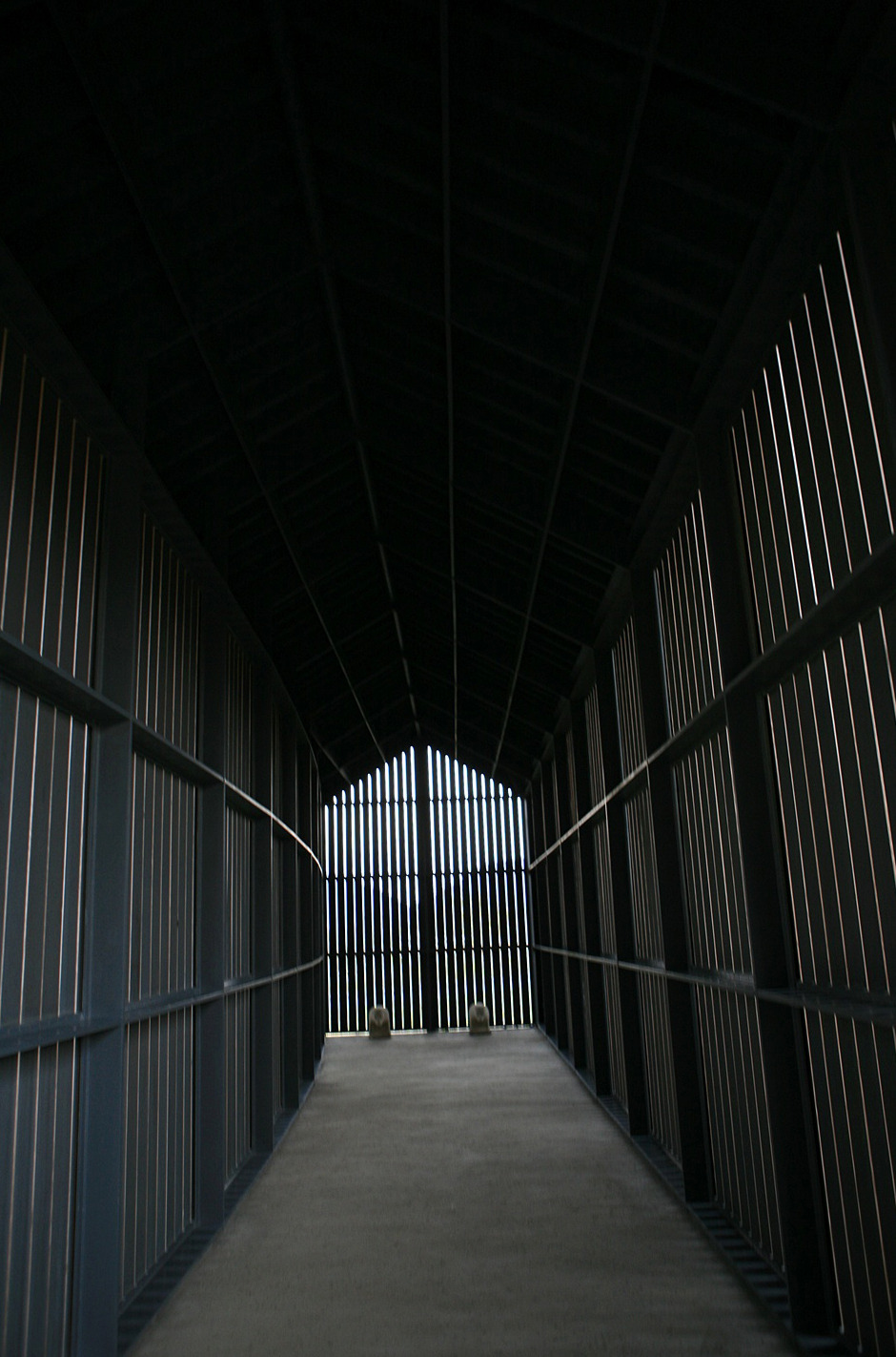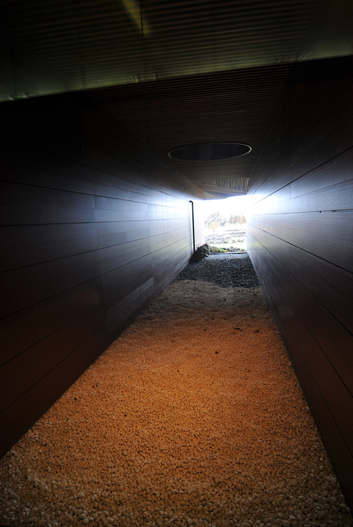 하늘에서 빛이 쏟아지는 직선의 복도를 지나가면 좌우측으로 계속 틀어진 틈이 만들어지면서 각종 도자기나 토기들이 하나씩 놓여 있다.