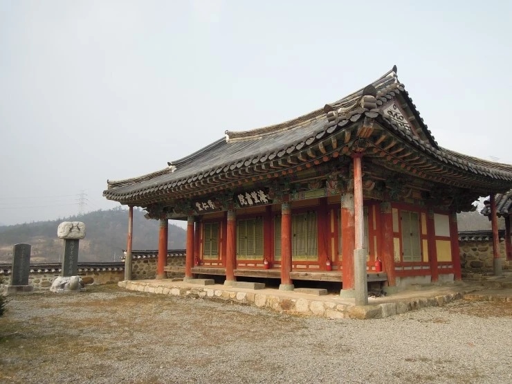 원으로 들어서는 입구 좌우에는 안내판과 서원의 유래를 알려주는 비석들이 서 있다.