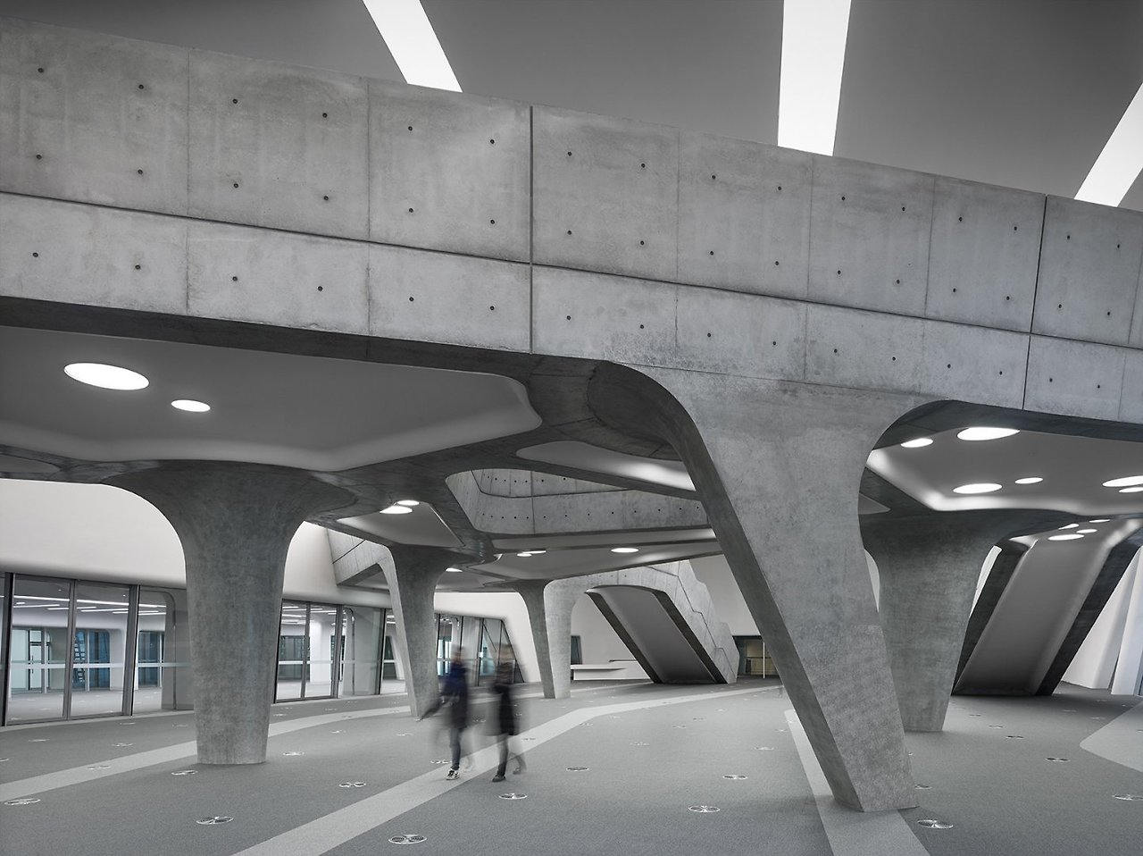 파격적 디자인으로 인해 그녀의 작품이 실현되기에는 시스템 구조적으로 어려움이 많았는데, 쿨하스와 작업 중 만난 유명 구조 엔지니어 Peter Rice피터 라이스로부터 일찍이 많은 조언과 도움을 받았다.