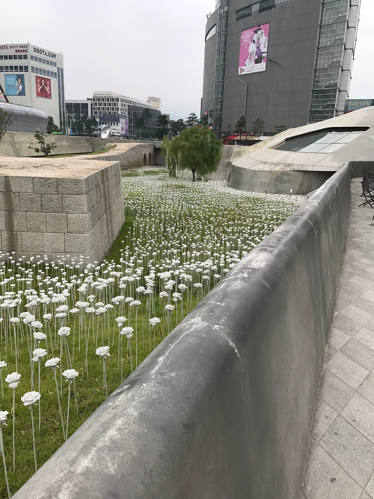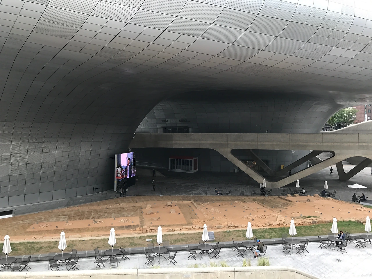 더욱이 Landscape 랜드스케이프 건축이라는 개념과 Landmark 랜드마크로서의 건축이라는 타이틀 때문에 공사 중에 유구가 발견됐지만 애초부터 동대문의 역사성이 중요한 목적이 아니었기 때문에 멈출 수 없었다.