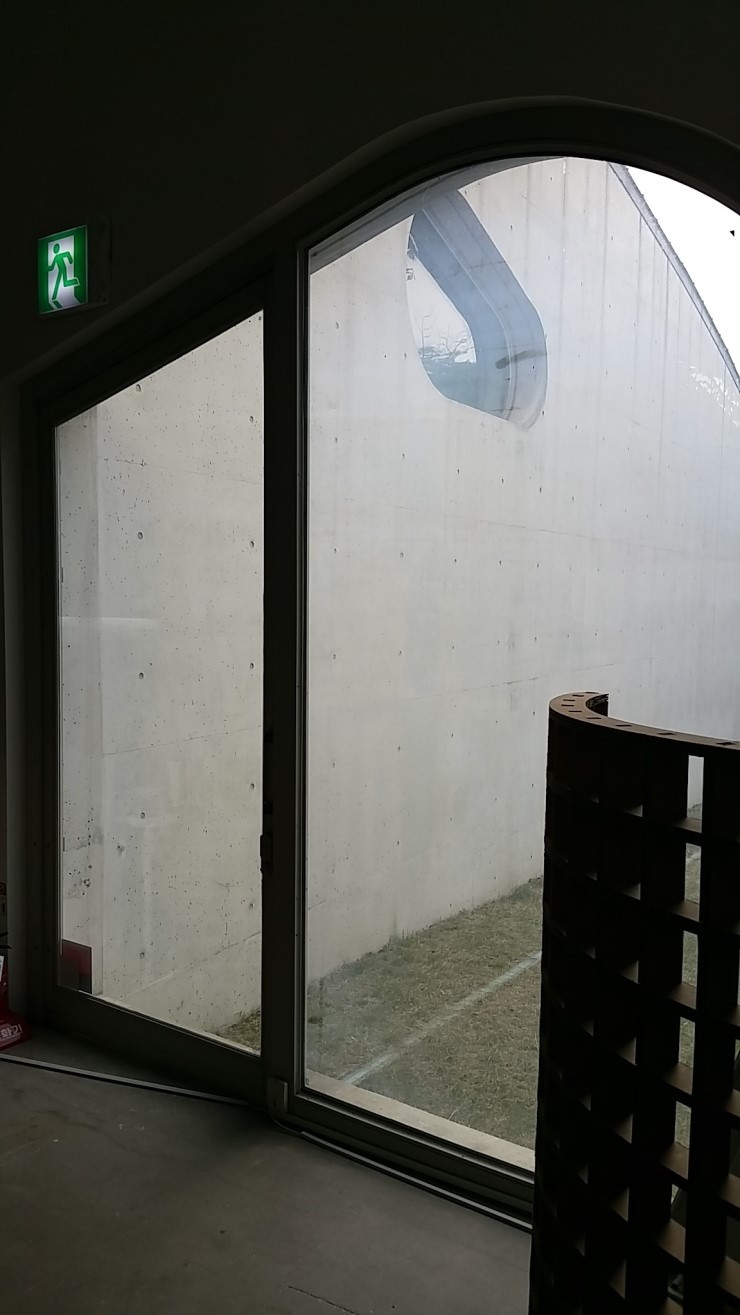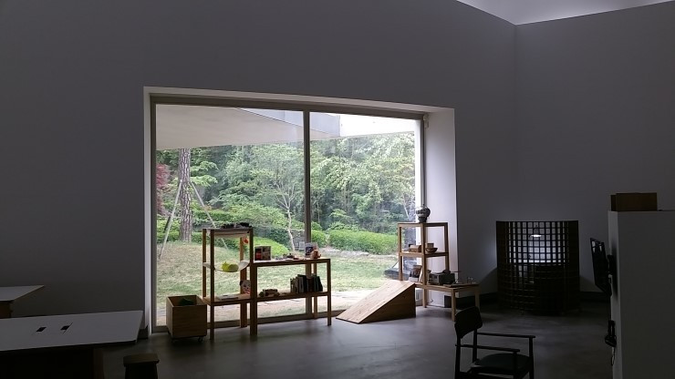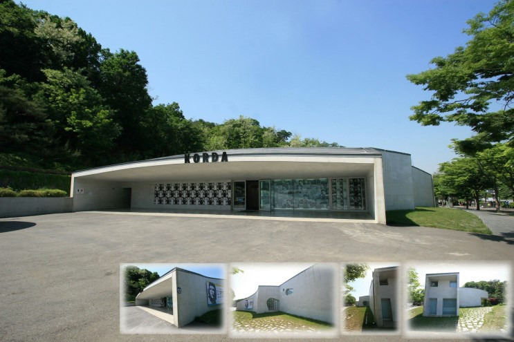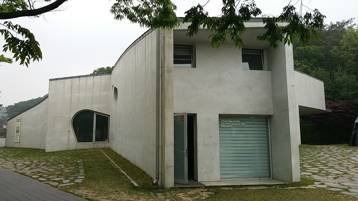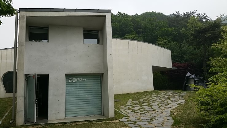 냇가의 물흐름에 맞추려고 전면도로에 면한 미술관 외벽은 안으로 만곡된 곡면, 자연 속에 들어가 자연을 완성하는 건축이다.