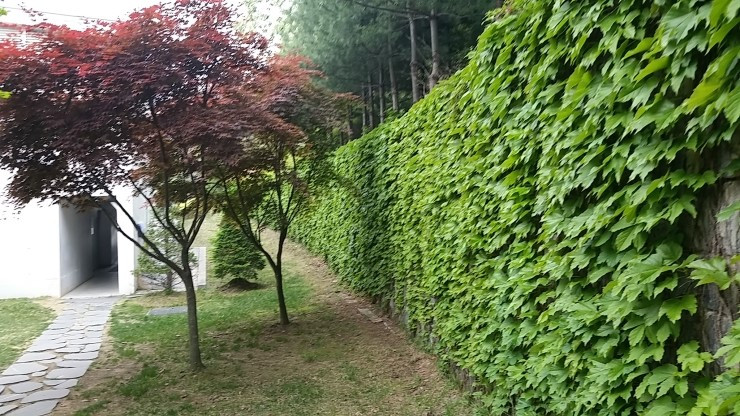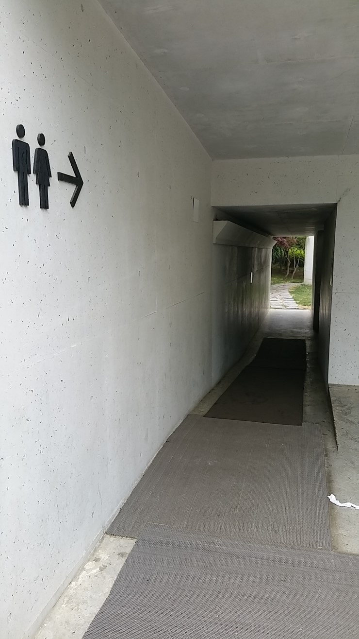 후면으로 돌아가면 공중화장실사이로 터널이 만들어지면서 전면 현관으로 동선이 흘러가고 깊게 파여진 처마 속 현관 들어서니 좌측에 중정은 자연 속에 건축을 담고 건축 속에 다시 자연을 담고 장식도 형태도 없는 담대한 공간.
