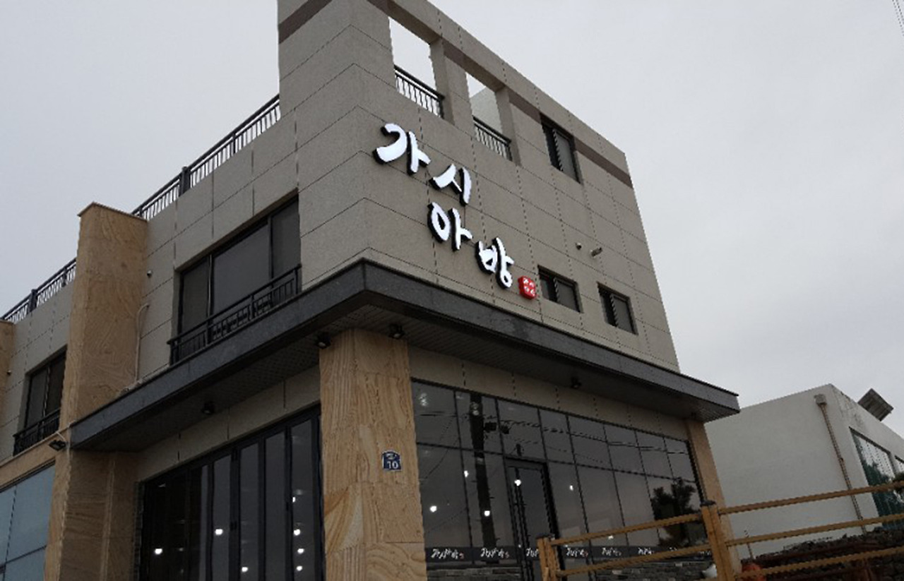 이집도 얼마전 새로운 신축 건물로 바뀌었는데 그 전엔 성산일출봉에서 오조만을 끼고 성산갑문으로 향하다보면 오래된 집에 커다란 간판이 눈에 들어오는 집이었다.