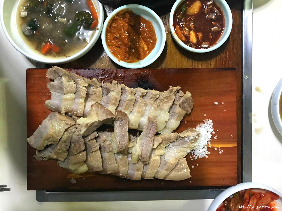 성산쪽에서 전통적으로 유명한 수육집은 성산항 입구에 있는 옛날예적이라는 상호의 음식점이었지만 이제는 어쩌면 그 추세가 뒤집어진것도 같다.