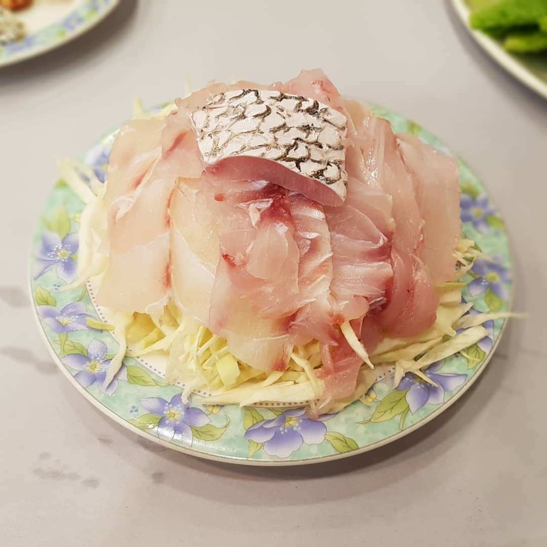분홍빛이 감도는 뽀얀 흰색의 민어회.