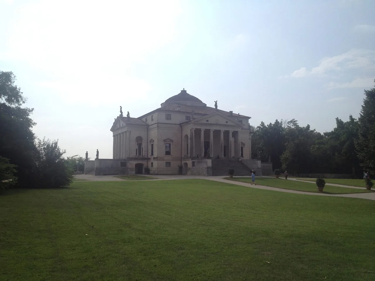 “빌라 로톤다는 도시에 인접한 다른 빌라들과 함께 위치하지 않았습니다. 대지는 거대한 극장의 한 면을 부여하며 경작지로 활용되는 아름다운 언덕들로 둘러싸여 있으며, 완만한 오르막길 언덕 위 매우 쾌적한 장소에 위치합니다. 그리고 빌라의 모든 면에서 매우 아름다운 광경을 즐길 수 있습니다. 어디는 저 멀리, 또 어디는 저 지평선 끝까지, 그리고 4개의 정면 모두에 로지아가 자리합니다.”