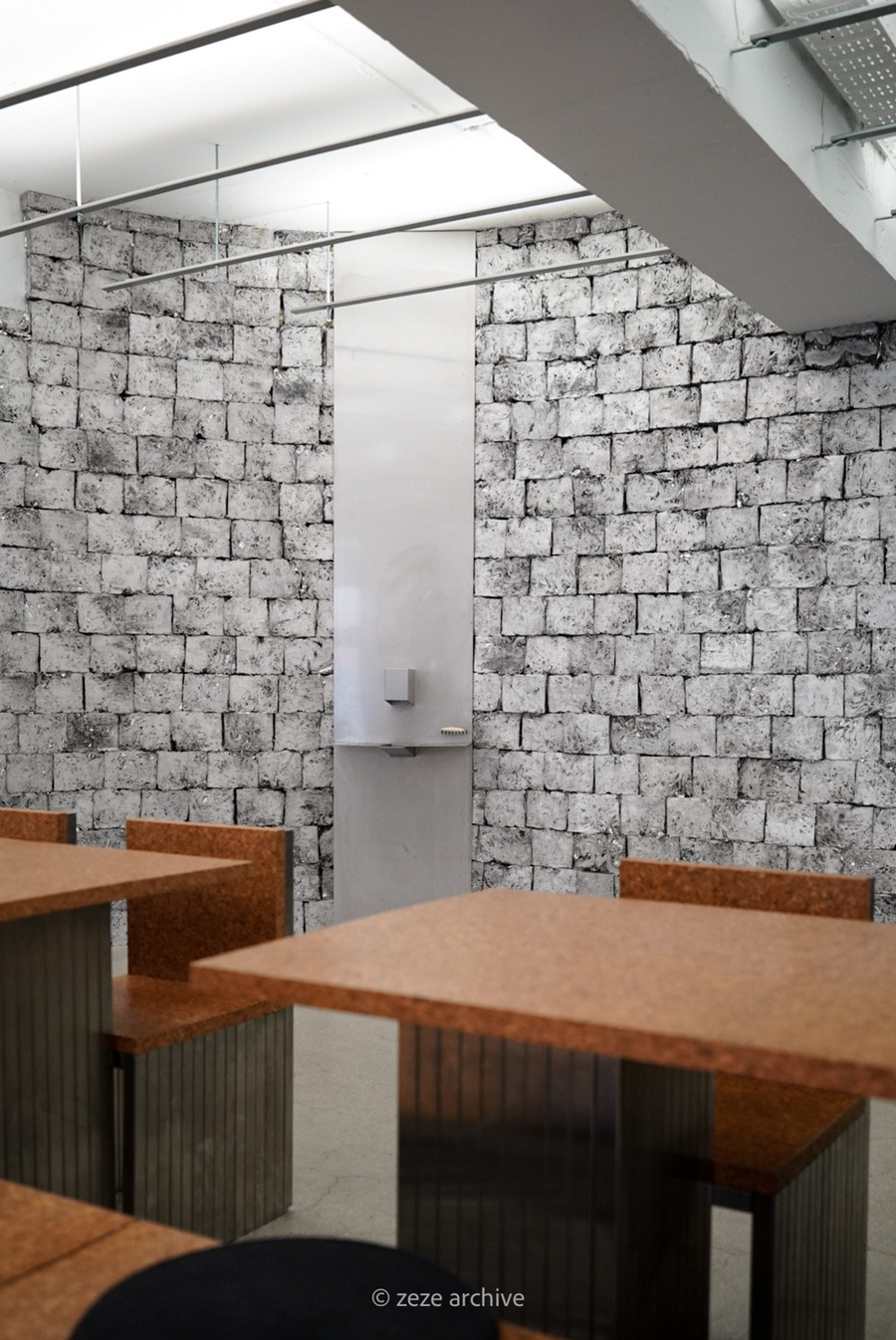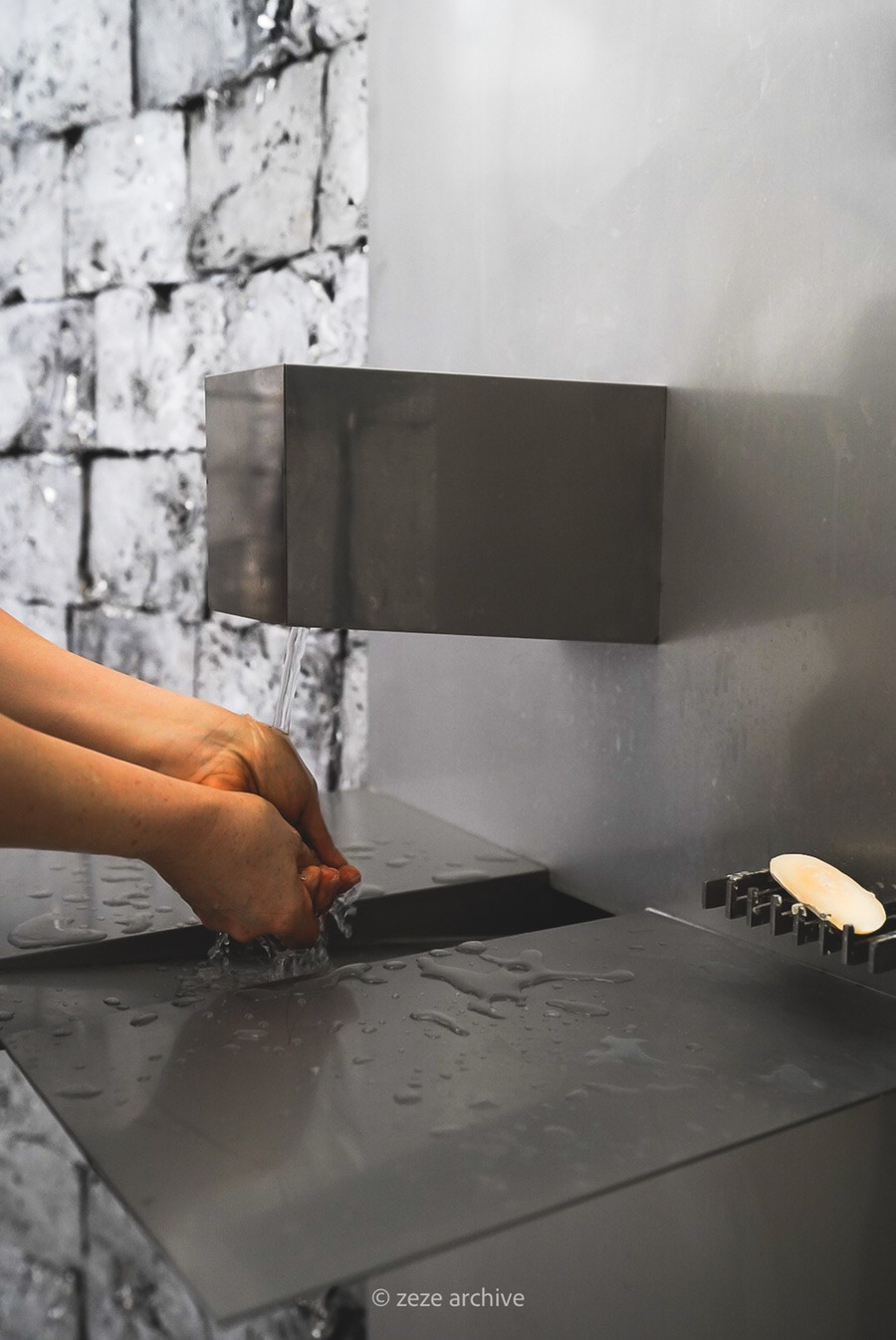벽면에는 손을 씻는 세면대가 전시품처럼 놓여있다. 사람들이 식사하는 테이블과 큐브 사이에서 손을 씻는 게 하나의 퍼포먼스처럼 느껴져 괜히 한 번쯤 가서 손을 씻어보게 된다. 역시나 휴지, 비누통 등 일회용품을 사용하지 않았다.