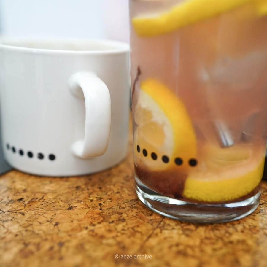 점점점점점점이 갖고 있는 공간의 메시지는 한결같다. 테이블은 스테인리스 각관을 이용해 테이블과 의자 다리를 만들었고 코르크를 압축한 상판을 얹어두었다. 자리에는 일회용 휴지 대신 면포를 두었고, 테이블 옆 오브제도 폐알루미늄 큐브로 장식했다.