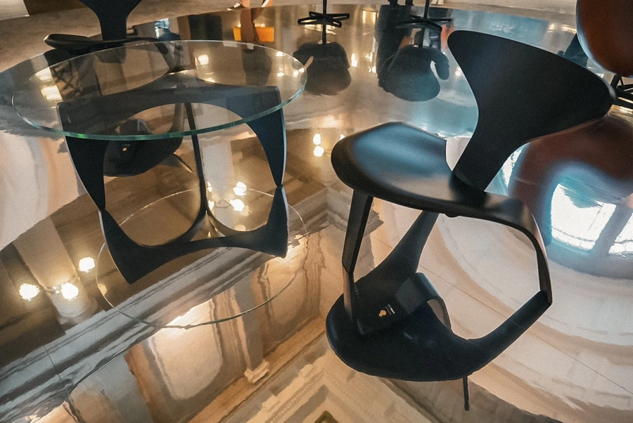 프리츠한센이 인정한 천재 디자이너였던 폴 케홀름이 디자인한 커피 테이블과 의자. 세 개의 지지대 다리와 등받이가 하나로 유연하게 이어지는 디자인으로 균형감이 돋보이는 의자.