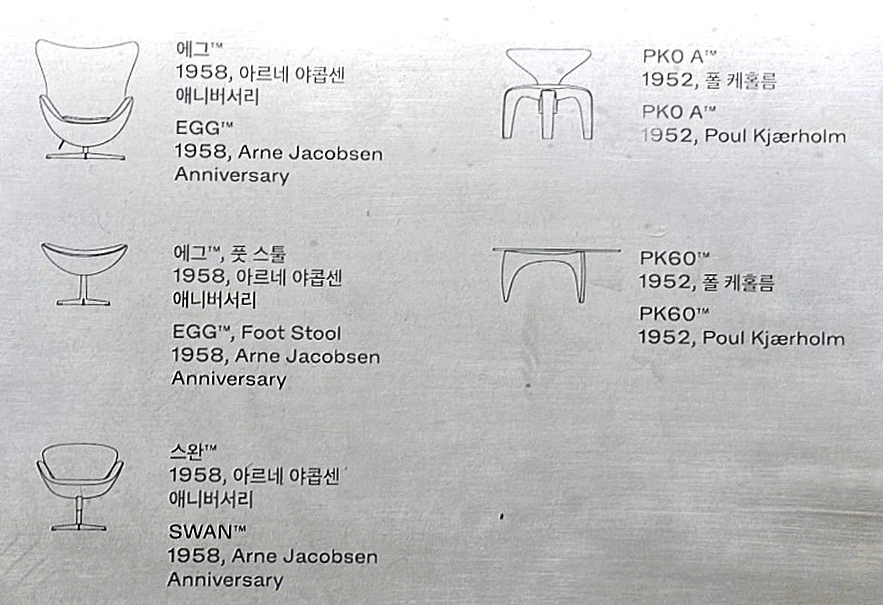 가장 탐났던 폴 케홀름 PK25. 폴 케홀름은 목재 이외의 다양한 소재를 가구에 접목시키는 것으로 유명하다. 기능적으로 필요 없는 요소들을 제거하고 재료 본연의 성질과 구조를 드러내는데 탁월한 디자이너. 스틸 프레임의 절묘한 각도가 끝내준다. 이게 졸업작품이었다니... 천재는 다른가 싶다. 언젠가 우리 집에도 들여올 수 있을까.