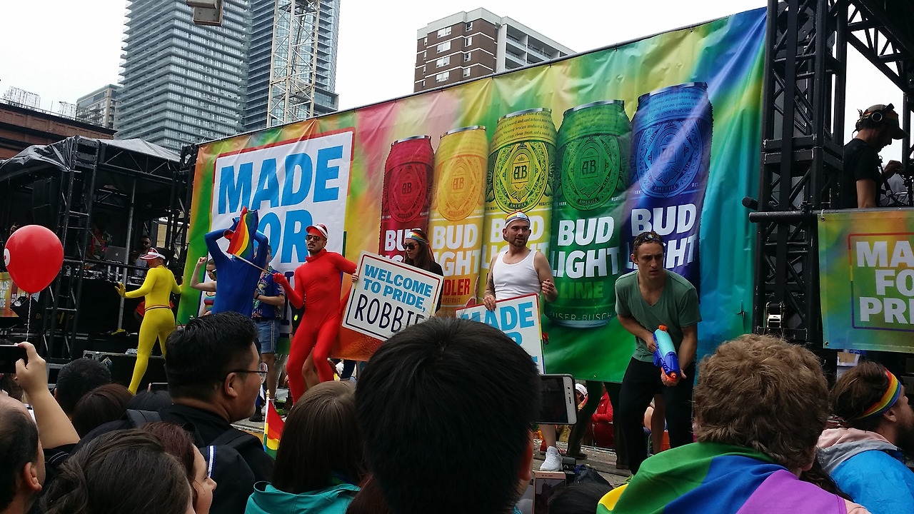 장난스러운 물총 세례와 함께 콘돔, 사탕, 자석제품, 꽃, 풍선, 펜, 무지개 깃발, 티셔츠 등을 무료로 받는 재미도 있다. 한편, 이 행사의 펀딩을 제공하는 다국적 기업들이나 규모가 큰 회사들은 기념품에 로고를 부착하거나, 노골적으로 회사의 심벌을 들고 나와 LGBT2Q+ 퍼레이드를 마치 상업적 광고판으로 만들어 버리기도 한다.