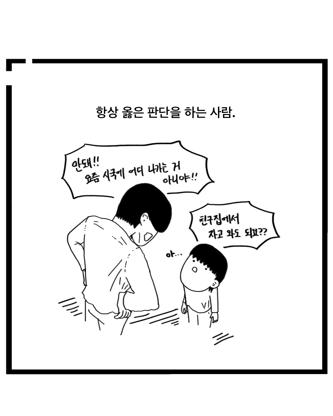 어릴 적 저는 어른들을 보며 대단하다 생각했습니다. 어른은 내가 모르는 것의 모든 것의 답을 알고 있었습니다. 내가 무언가를 물어보면 항상 한치의 망설임도 없이 답을 해주었습니다. 어른들은 내가 해야 할 것과 하지 말아야 될 것을 명확히 알고 있었습니다. 무언가를 하려고 하면 '그건 하면 안 돼!.', '너는 ~~ 게 해야 해!' 등과 같이 저에게 명확한 판단을 내려줬습니다.