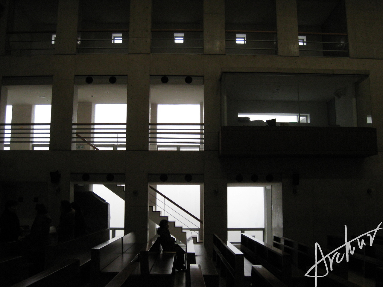 답답해 보일 수도 있지만 계단을 따라 올라간 신도들의 시선은 벽에 막히지 않고 하늘로 향한다. 생각해보면 '침묵'은 그 자체로는 느낄 수도, 알 수도 없기 때문에, 침묵은 그것을 둘러싸고 있는 소리나 언어환경을 통해서만 느낄 수 있다《The Aesthetics of Silence, Susan Sontag》. 배형민은 "기독교 교리로 보자면 절대 침묵은 곧 신이다"라고 했다. 그렇다면 본당을 들어서기 직전 마주하는 벽에서 침묵은 무엇을 통해 느껴질까? 갑자기 고장 난 컴퓨터, 가전제품을 산다는 확성기 소리가 들린다. 그래. 벽 넘어 들리는 우리 일상의 소음을 통해 침묵이 느껴진다. 그렇지. 신은 우리의 삶이 없다면 존재할 수 없는 존재지.