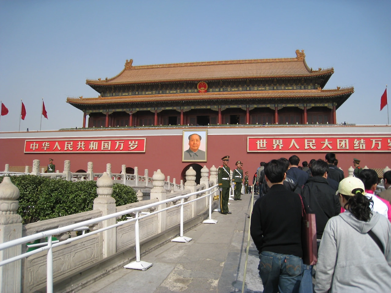 1950년대에는 마오쩌둥이 황성의 정문인 천안문(天安門) 앞에 기존 관청 건물을 허물고 세계에서 가장 큰 광장을 만들었다. 천안문 광장 조성은 북경을 중화인민공화국에 걸맞는 수도로 만들기 위한 마오쩌둥 도시계획의 핵심이었다. 현재 이곳에는 그의 묘지를 비롯해 인민대회당, 국립대극장 등 중국을 대표하는 시설들이 있다. 그리고 천안문에는 마오쩌둥 사진과 양쪽에 ‘中华人民共和国万岁(영원한 중화인민공화국)’, ‘世界人民大团结万岁(세계 인민들의 영원한 통합)’라는 표어가 걸려 있다.