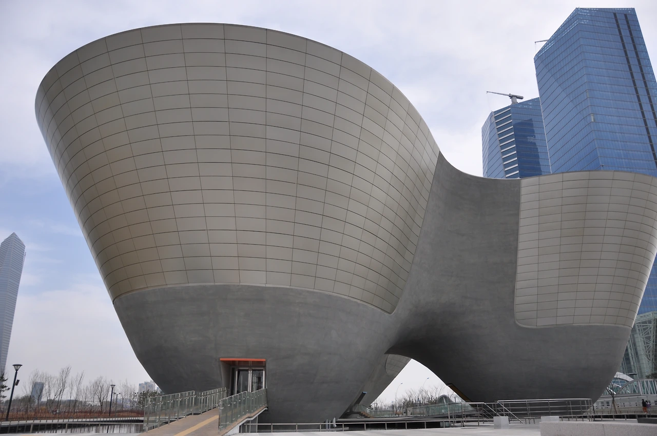 그럼 왜 유걸은 구현하기 까다로운 구조를 적용하여 특이한 형태의 건물을 설계했을까? 가장 먼저 건축가는 언덕과 골짜기가 많아 유려한 곡선이 두드러진 우리나라의 지형을 떠올렸다. 그리고 계획 초기에 넓은 천장을 전시를 위해 사용하기로 했기 때문에 바닥에 변화를 주었다.