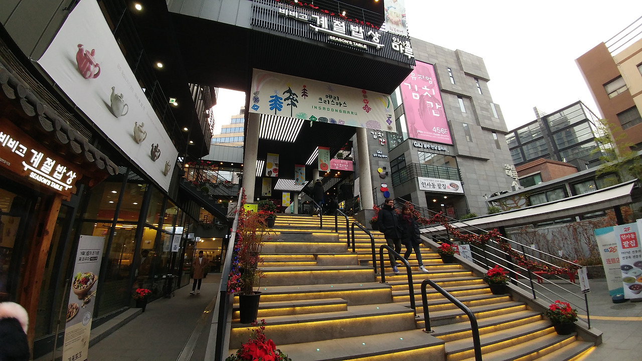 일단 인사동과 어울리는 기와편, 나무널, 회벽, 적삼목을 외관 재료로 사용했다. 그리고 하나의 덩어리였던 기존 건물을 주변 건물들과 비슷한 크기로 분절했다. 무엇보다 건물 가운데를 가로질러 옥상까지 연결되는 쭉 뻗은 계단을 새로 만들었다. 권문성은 건물 한쪽 모서리가 인사동 네거리에 맞닿아 있다는 점을 고려하여 네거리를 오가는 사람들이 계단을 통해 건물로 드나들 수 있도록 했다. 설계자가 ‘언덕의 작은 골목길’이라 부른 이 계단은 각 층에 배치된 공예품 판매점, 회랑, 옥상정원을 직접 연결하며, 건물 내부의 다른 통로로 이어진다.
