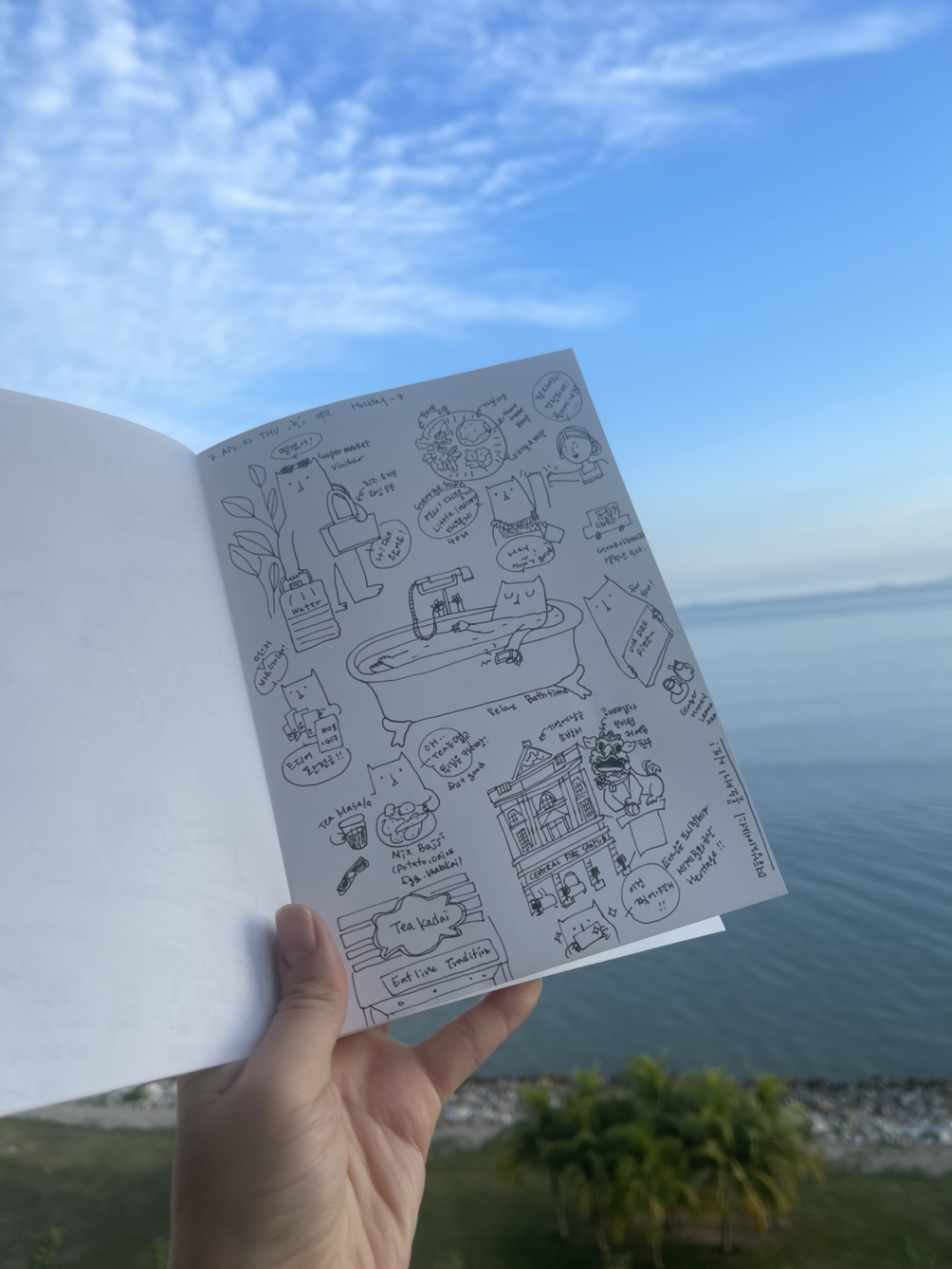 음식을 먹으며 글이나 혹은 그림을 그려볼까 했는데, 이런 놓고온 모양이다. 그래서 결국 오롯히 음식에 집중하고 외부에 집중하며 시간을 보내기로 했다.
