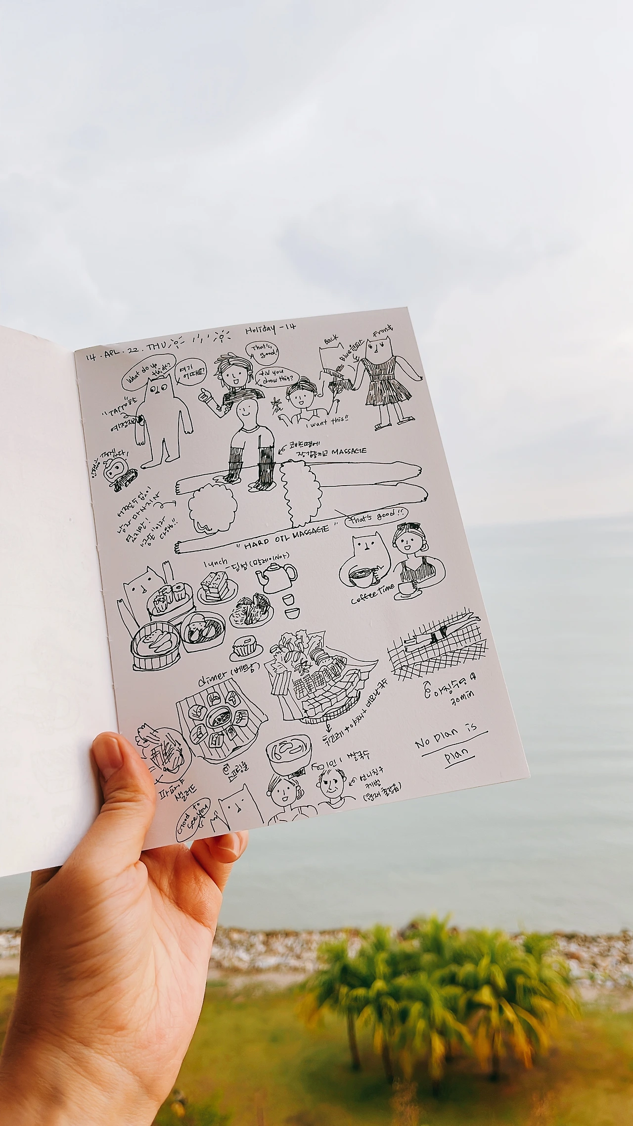 "아! 한국에서? 한국에서는 디자인일을 했었어. 대학교에서 아이들 가르 치는 일도 하고. 근데 지금은 그만두고 여기 홀리데이로 왔지"
