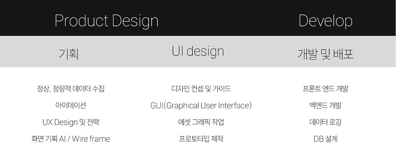 또한 프로젝트 규모, 기간, 개발 환경에 따라 디자인 방식이 달라지기 때문에 해당 OS에 대한 특징에 대해 알아두면 유용합니다. 예를 들어 IOS를 디자인한다고 할 경우, 그에 맞는 가이드라인, 컴포넌트, 해상도, 단위에 맞춰 디자인해야 하고 이에 개발하여 앱 스토어에 앱 배포까지 이루어져야 합니다. 이것은 독답적으로 설정하는 것이 아니라 각 파트마다 정해진 목표설정을 위해 긴밀한 커뮤니케이션을 통해 이루어집니다.