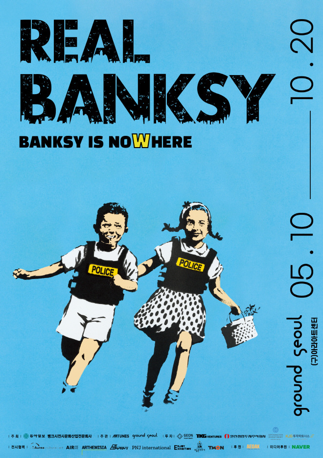 전시 <리얼 뱅크시 REAL BANKSY: Banksy is NOWHERE>는 국내 최대 규모의 뱅크시 작품전으로 지난 5월 10일부터 10월 20일까지 인사동 그라운드서울에서 진행된다. ‘얼굴 없는 화가’, ‘정체를 숨긴 거리의 예술가’, 스스로를 ‘아트 테러리스트’라 칭하며, 특유의 사회 풍자적이고 파격적인 주제의 작품으로 전 세계의 주목을 받으며 큰 반향을 일으키고 있는 영국 출신의 그래피티 아티스트 뱅크시의 25년간의 행보를 한눈에 만나볼 수 있다. ‘페스트 컨트롤’은 뱅크시가 직접 설립한 인증 기관으로 뱅크시의 작품을 판매하거나 진품 여부를 판정해 주는 역할을 하고 있다. 이번 전시는 이탈리아의 피에르니콜라 마리아 디 이오리오 외 국내외 뱅크시 관련 전문 큐레이터들의 연구 결과를 바탕으로 기획되어, 거리 예술로부터 파생된 그의 초기 작품부터 이후 20여 년간의 비폭력주의, 예술의 자본화 등 다양한 사회변혁의 메시지를 담은 작품을 만나볼 수 있다.