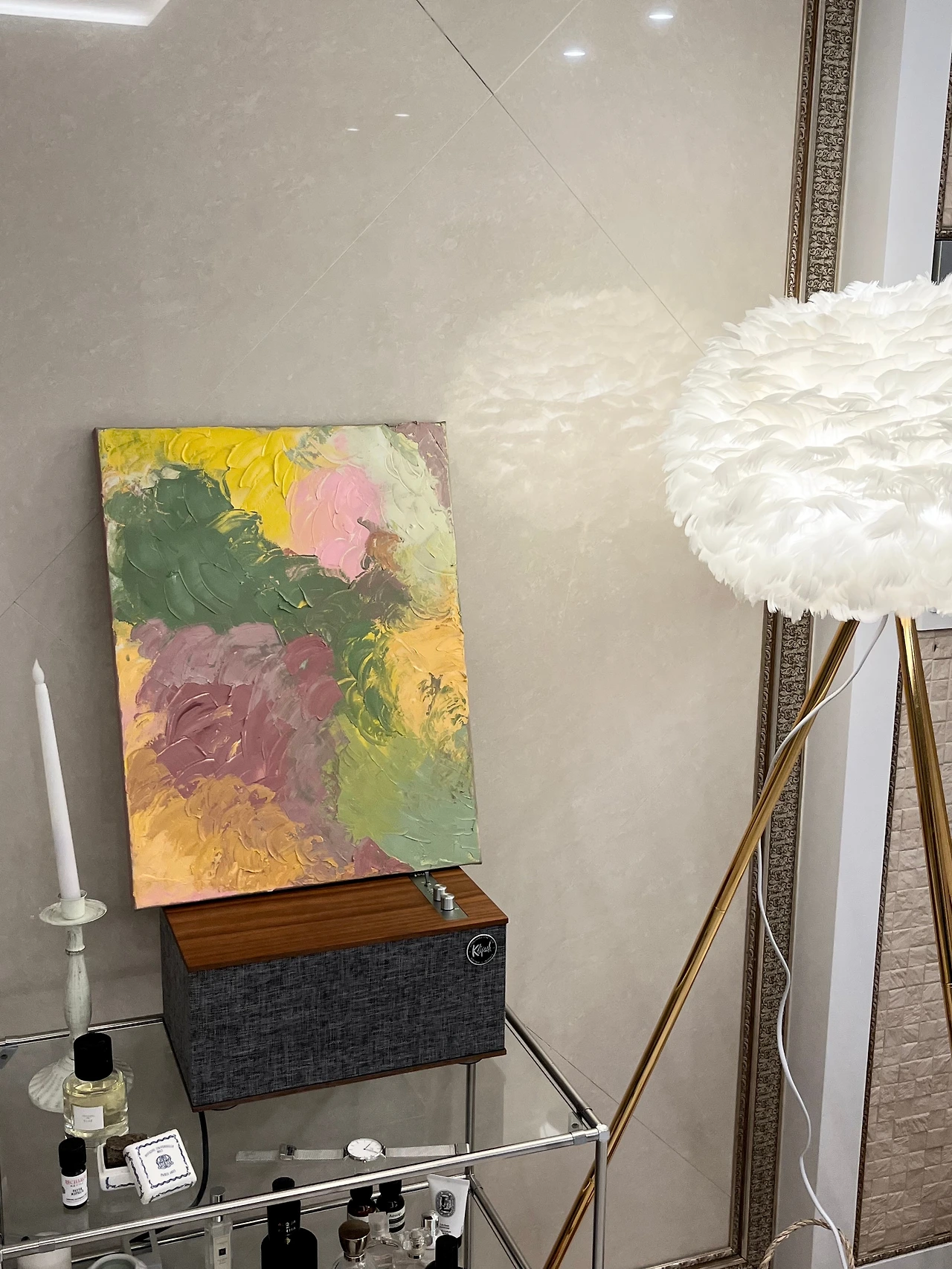 그런데 저는 색깔 조합을 참 좋아하는 사람입니다. 옷을 입을 때도 가구 배치를 할 때도 꽃 꽂이를 할 때도 색 조합을 아주 좋아합니다. 우연히 원데이 클래스에서 백드롭 페인팅을 접해보고 꾸준히 그림을 그려오고 있습니다. 하늘은 보라색이어도 괜찮고 이미 수많은 화가들은 하늘에서 보라색을 보았습니다. 데이비드 호크니는 땅도 보라색으로 그린답니다.