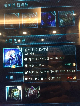 전리품 상자에서 펄스 건 이즈리얼이 나왔다.(약 22000원짜리)