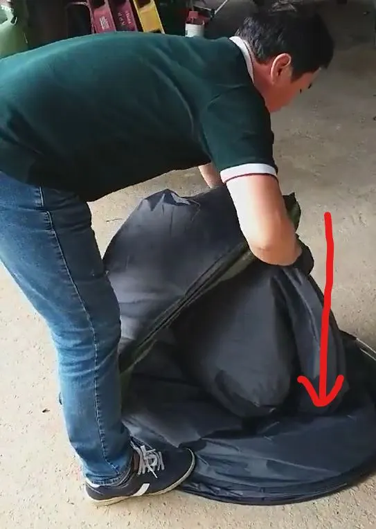 두 번째 텐트 접기에 성공하면서 약간 짜릿한 손맛이 왔다. 이렇게, 이렇게 하면 접히더라는 느낌이 온 것이다. 원터치 텐트를 접어본 사람만 알겠지만 눈앞에서 보여줘도 따라 하기 어려운 묘한 구분 동작이 하나 있다.