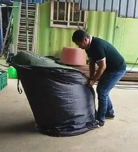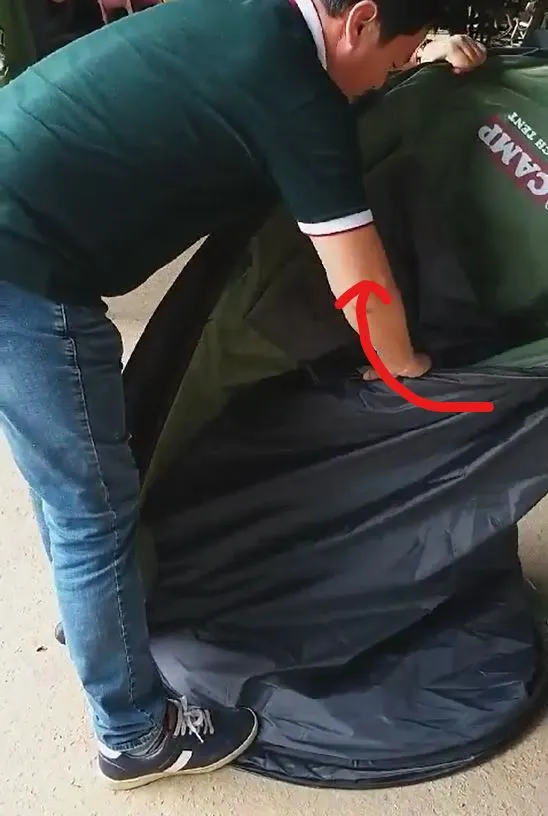2. 텐트를 모아 살짝 털어주며 안심시킨다.