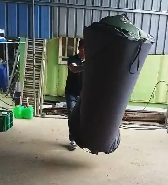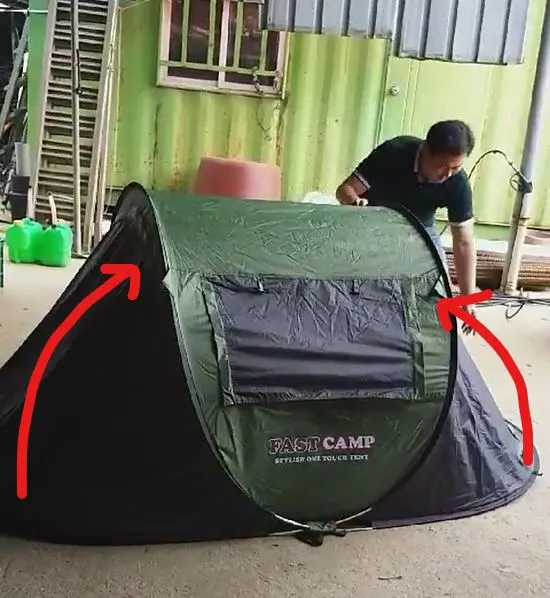 1. 텐트의 양 날개를 접어 들어 올린다.