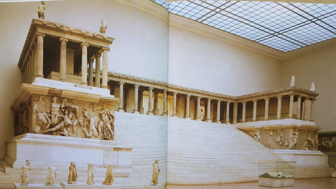 이 유적은 독일 제 2 제국이 황제국으로서, 즉 제국의 위용을 과시하고 마찬가지로 그들의 승리를 정당화하기 위해 거의 1 천 년 동안 폐허 더미 아래 묻혀 있었던 이 신전을 발굴하게 한 후 오스만 제국으로부터 사들인 것이다. 이 페르가몬 유적을 토대로 만든 박물관이 바로 제국의 위엄을 더해줄 것이라고 믿었던 페르가몬 박물관이다. 독일의 대 프랑스 전쟁의 승리를 기념하고 고대 역사유물을 갖춤으로써 황제국의 뿌리가 굳건함을 보여줄 수 있는 전시관! 페르가몬 제단'은 단연 이 박물관의 정체성을 그대로 보여주는 최고의 전시물이 아닐 수 없다. 그러나 2013년부터 2025년까지 대대적인 리노베이션 일정으로 전시 품목에서 빠졌다. 운이 없긴 했지만 박물관 샵에서 이 멋진 책을 살 수 있어서 위로를 삼을 수 있었는데 여기 나오는 생생한 이미지는 모두 이 책 덕분이다.