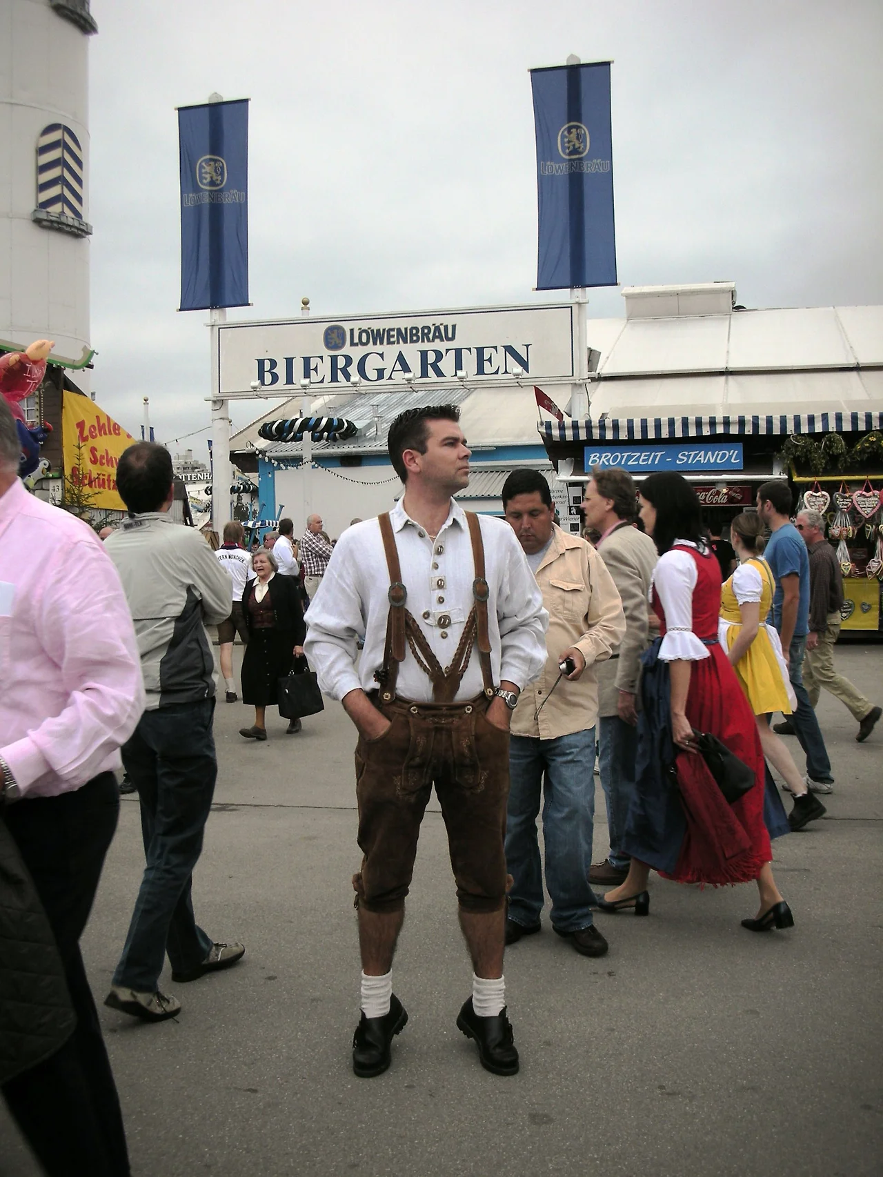 '맥주 축제'로 알려져 있는 이 축제를 6 개월간 체류하며 겪어보니 아주 다른 측면이 보인다. 이 축제를 한 번 스쳐 지나가는 관광객의 입장에서가 아니라 늘 부대끼며 인사하며 아는 사람들과 함께 체험해서 그런가...도서관에서, 관공서에게 마치 약속이나 한 듯이 전통복식인 디른들을 입고 일하는 것이 아닌가...한 달 내내 디른들 입고 직장 가고, 직장에서 단체로 회식 오는 곳, 그 곳이 옥토버페스트였다. 이 축제를 바이에른 주에서 그렇게 즐기는 이유는 사실 독일 남부권의 전통 그 자체를 즐기는 일상의 연장이자 일년만의 화려한 외출이 일상이 되는 그런 계기를 제공하기 때문일 것이다. 이 화려한 외출을 돕는 옷이 바로 여성의 전통복식 '디른들 Dirndl'과 남성들의 '가죽바지 Lederhose' 그리고 당연히 덤으로 따라오는 돗수 높은 맥주와 돼지 다리 오븐 구이인 '슈바인학세'다.
