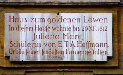 이 집 "금사자 표시가 있는 집"에 1812년 7월 20일까지 율리아 마르크가 거주함. E.T.A. 호프만의 제자였고, 그가 만들어낸 가장 아름다운 여성의 근원상