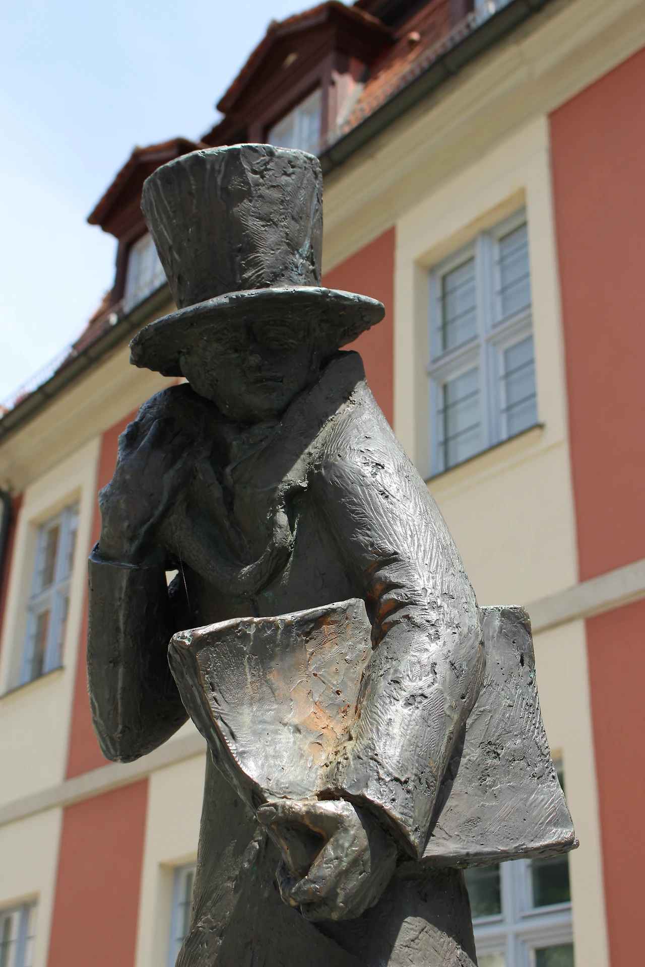 작은 체구, 검은 연미복, 옆구리에 낀 악보, 굽은 등... 상상했던 호프만의 이미지와 조금도 어긋나지 않는 그런 동상.. 저만한 키, 저 정도의 각도로 고개를 숙이고, 저렇게 악보를 끼고 비 오는 날 밤 밤베르크 거리를 미친 듯이 돌아다녔을 거야! 고양이가 뒤따라 다녔겠지!... 턱 밑을 만져주면 갸르릉거리며.... "너는 실패한 나와는 다르게 참 자유롭고 용감하구나...." 아마 이렇게 탄생했을 그의 이야기 <독학한 수고양이 무르의 인생관과 간간이 끼워 넣은 휴지 조각에 끄적거린 성가대 지휘자 요하네스 크라이슬러의 단편적인 전기 Lebensansichten des Katers Murr... (1819/1821)>