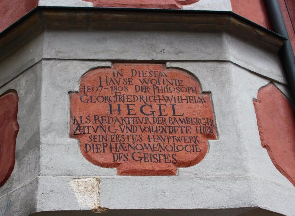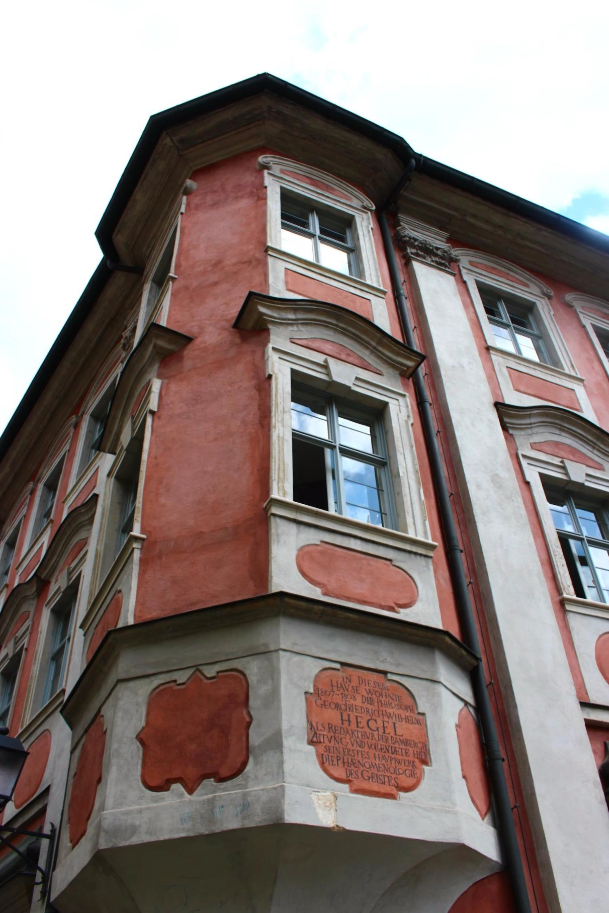 "이 집에서 1807년부터 1808년까지 게오르크 프리드리히 빌헬름 헤겔이 밤베르크 신문의 편집장으로 살았다. 그리고 여기서 그의 대작 '정신현상학'을 완성했다." 는 글귀!