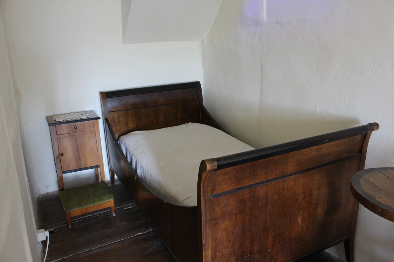 4층, 가장 높은 곳, 다락방, 그곳으로 가려면 좁은 박물관 전시실을 거쳐 원형 철제 계단을 기듯이 올라가야 한다. 이때 만나게 되는 다락방, 몇 사람이 서면 이미 꽉 찬듯한 정말 좁은 공간! 사랑과 일 모두 실패한 호프만이 살았던 곳이다.
