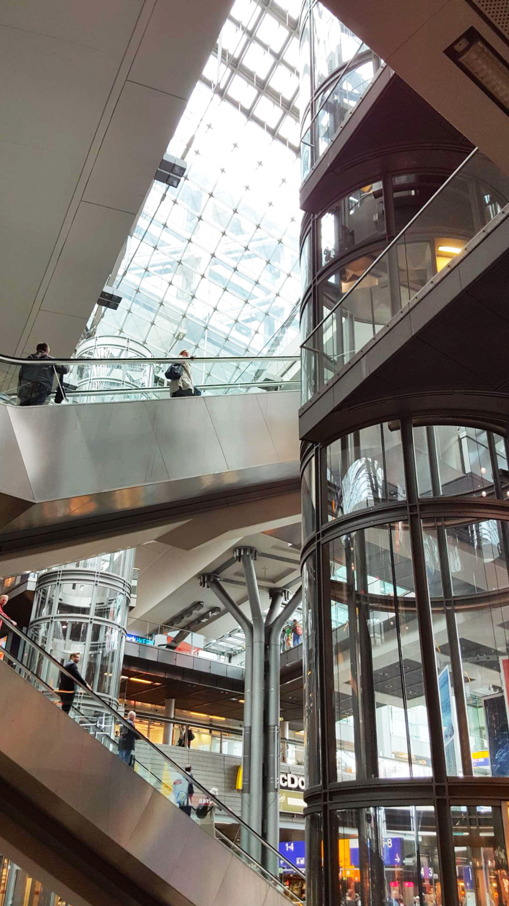 베를린의 첫인상을 결정짓는 이 곳! 3층 구조로 가장 위쪽은 S-Bahn이 다니고, 지하 tief에는 기차가 다니는 구조다. 런던에서도 공공건축이 어떻게 한 나라의 수도에 도착하는 사람들에게 뇌리에 박히는 인상을 주는지 경험했는데 이곳도 그렇다. 온갖 가게가 다 들어서 있지만 절대 전면에 부각되어 여행객의 짜증을 유발하지 않는다. 사실 엘리베이터와 에스칼레이터의 단순한 배치만으로도 이렇게 경외감마저 도는 건물구조를 엮어내다니... 새삼 건축의 힘을 느낀다.