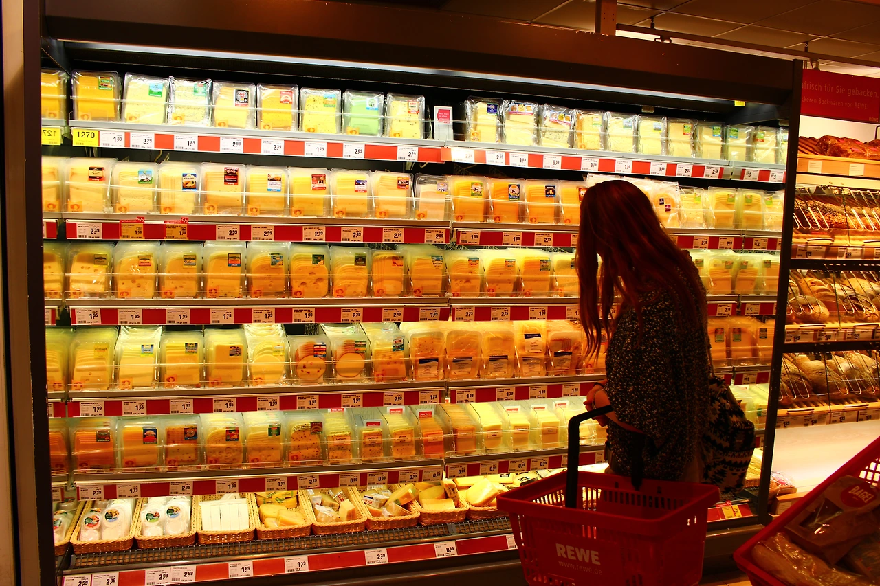 평범한 슈퍼 '에데카 Edeka'의 치즈 진열장,