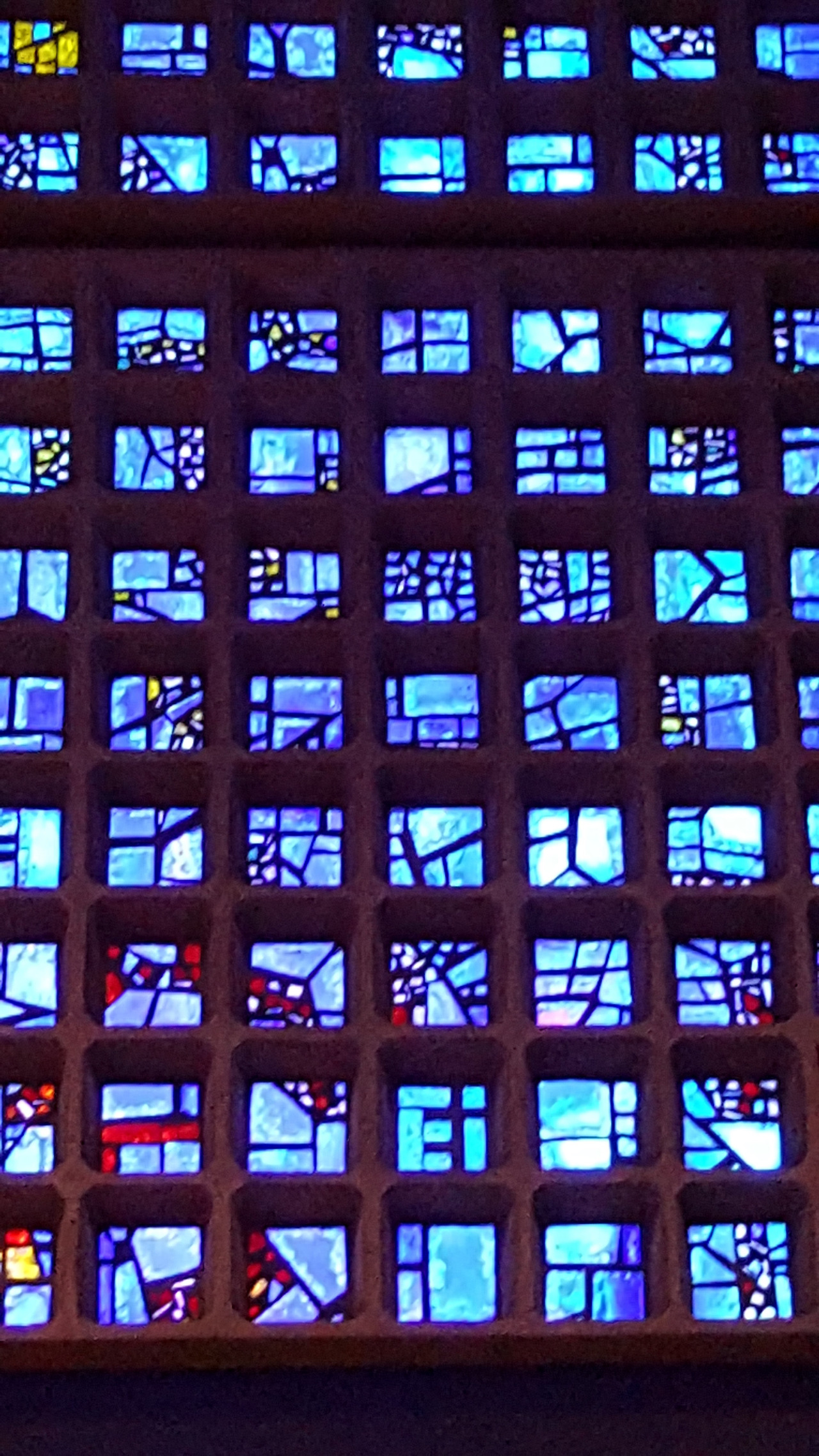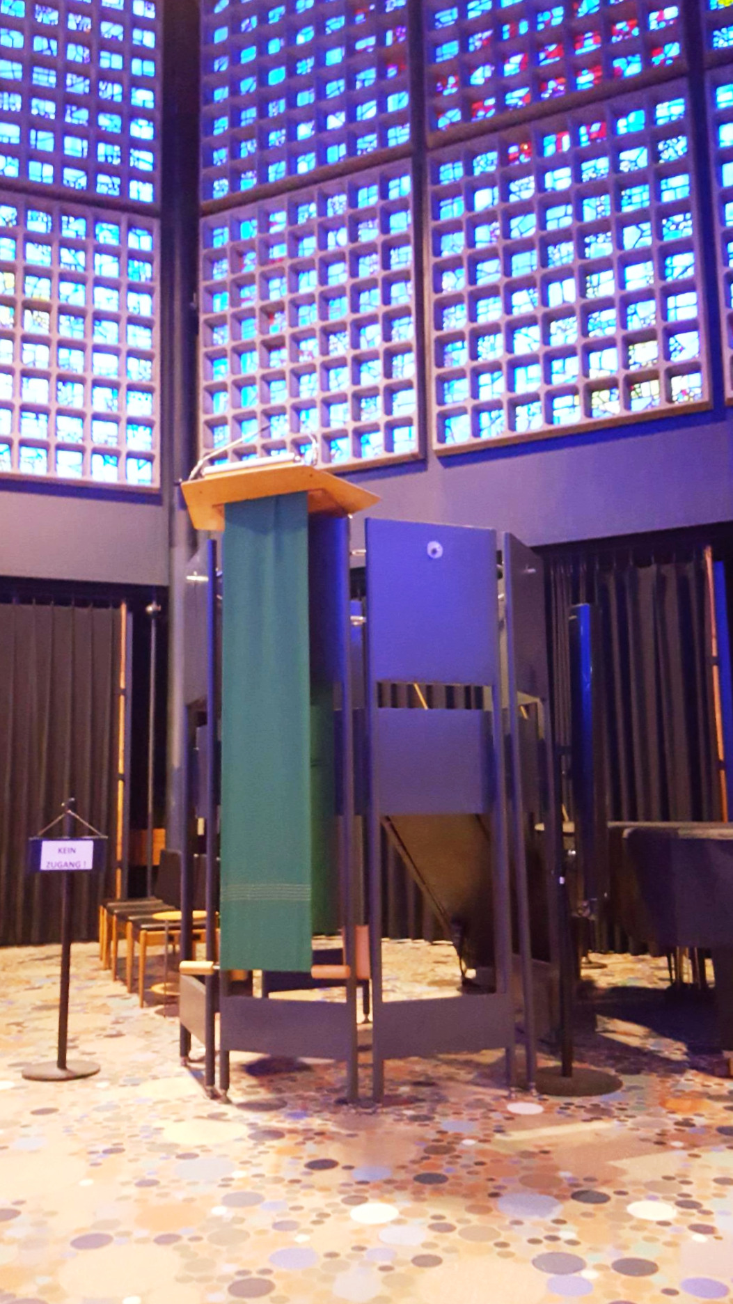 민족주의적인 구교회 옆의 새 교회는 재미나다. 위트 있고 낭만적이며 현대적이고 무엇보다 파란색 천지다. 이브 클랭의 파란색 못지않게 멋진 파란색. 1945년 파괴된 교회 옆에 들어선 신관! 안은 소박하지만 밖의 모습은 당시에도 상당히 파격적이고 아방가르드해서 '표현주의적이다!'라는 평가를 받은 에곤 아이어만의 작품이다. 저 파란색 모자이크 창문은 프랑스의 유리 예술가인 Gabriel Loire의 작품으로 2만 장의 유리가 저 달걀집 모양 속에 끼워졌다고 한다. 프랑스 감성인 것인가... 나를 뒤흔드는 것은!!!