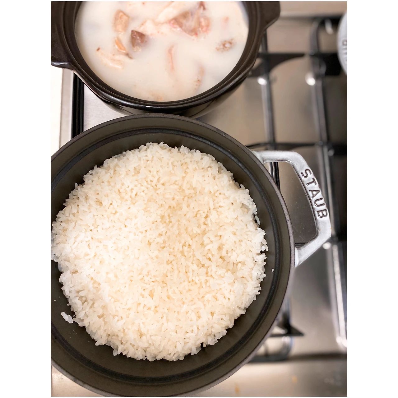 스타우브 냄비라면 중불보다 약불, 굉장히 약한 불에서 쌀이 물을 꼴꼴 충분히 먹을 정도로 가만히 두는 게 좋다.