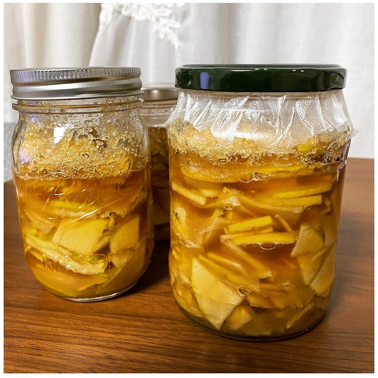 모과차를 만든 것이 숙성되고 있다. 이제 곧 차로 만들어 마실 수 있을 것 같다.
