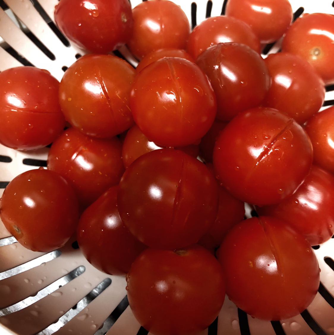 1. 토마토 세척 후, 일자로 칼집을 내준다. 칼집을 내주면 껍질을 벗기기 수월하다.